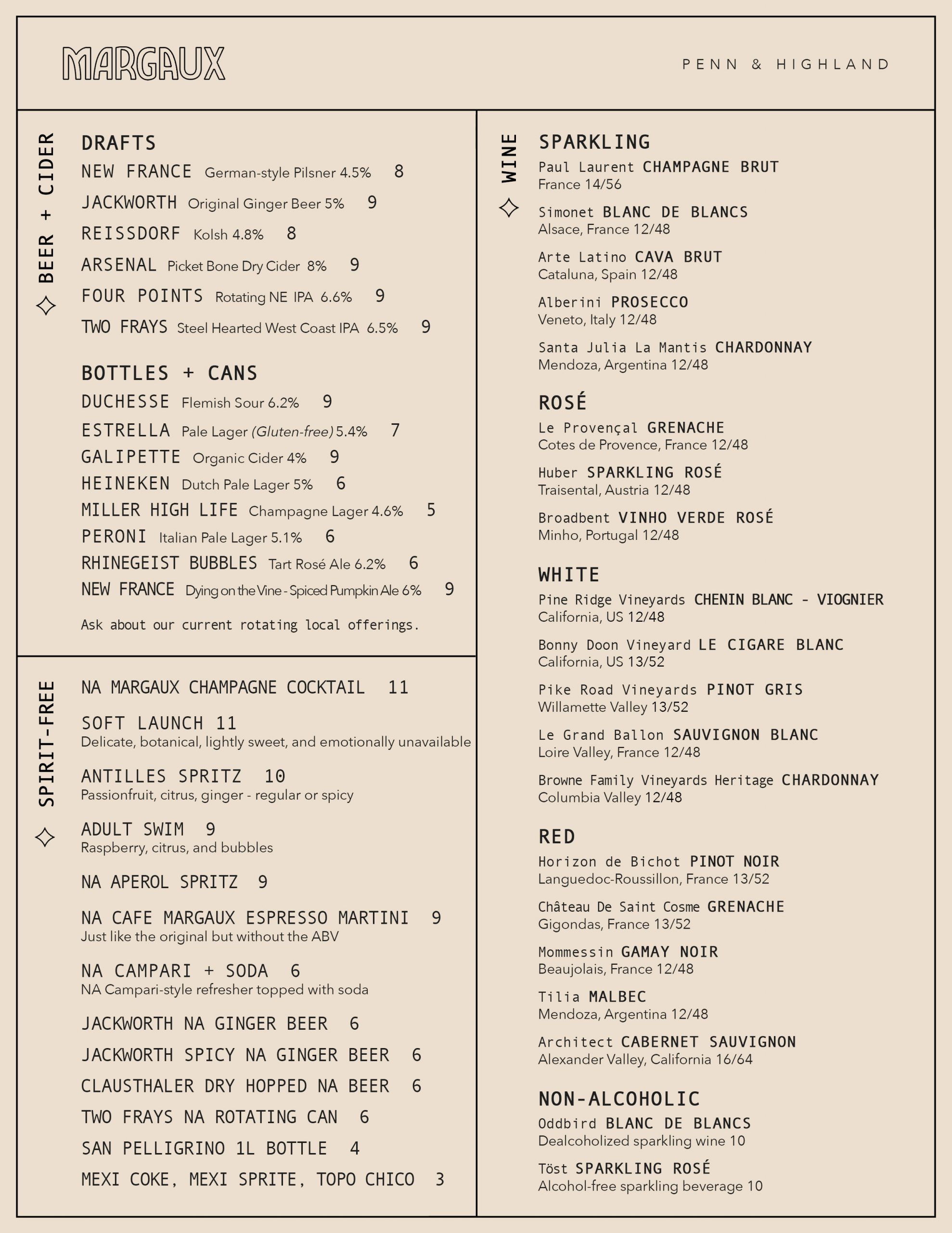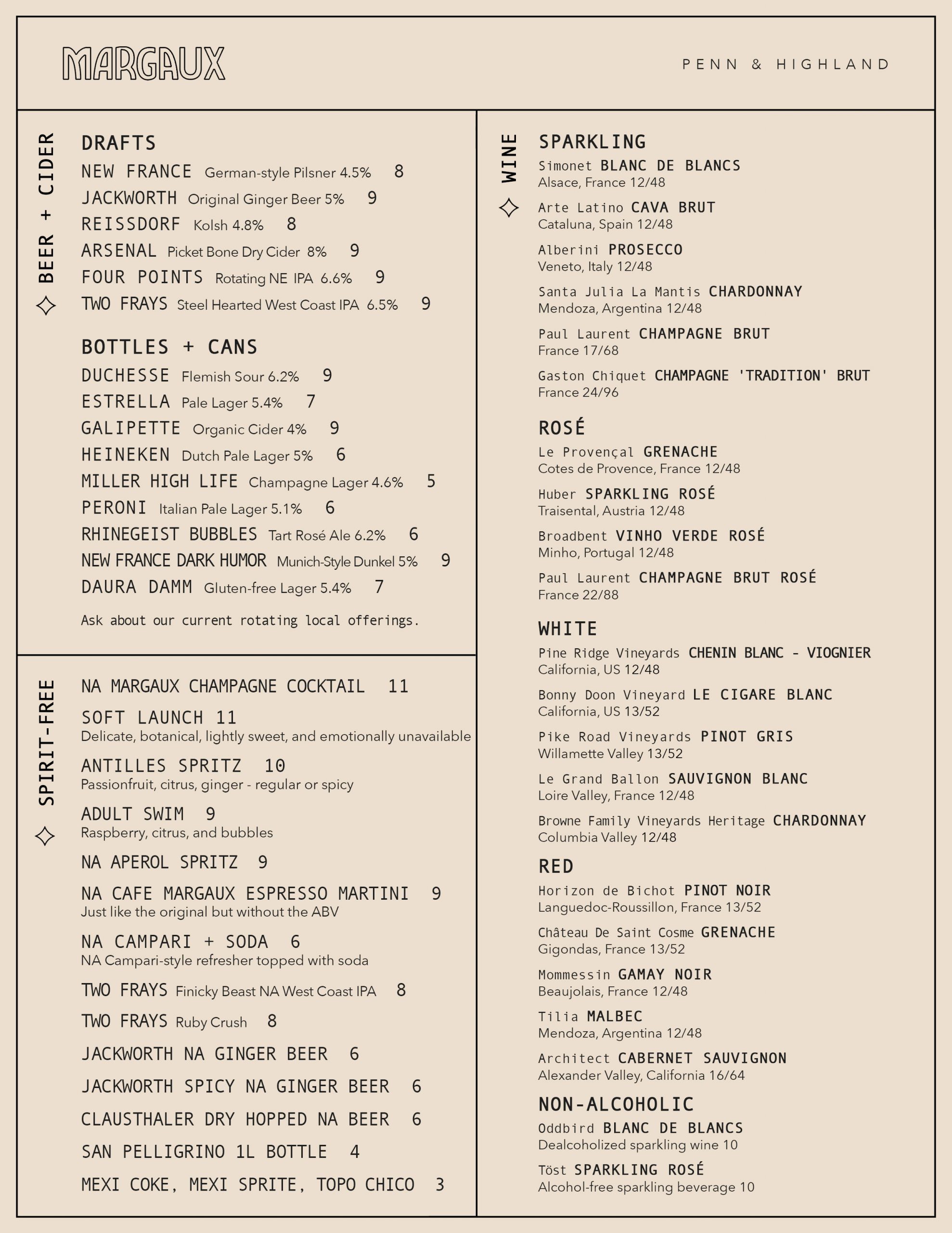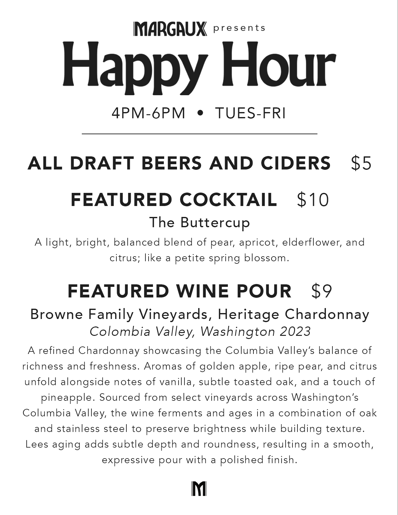 - Stay connected with us on social media @margauxpgh to get the latest happy hour drinks and updates.