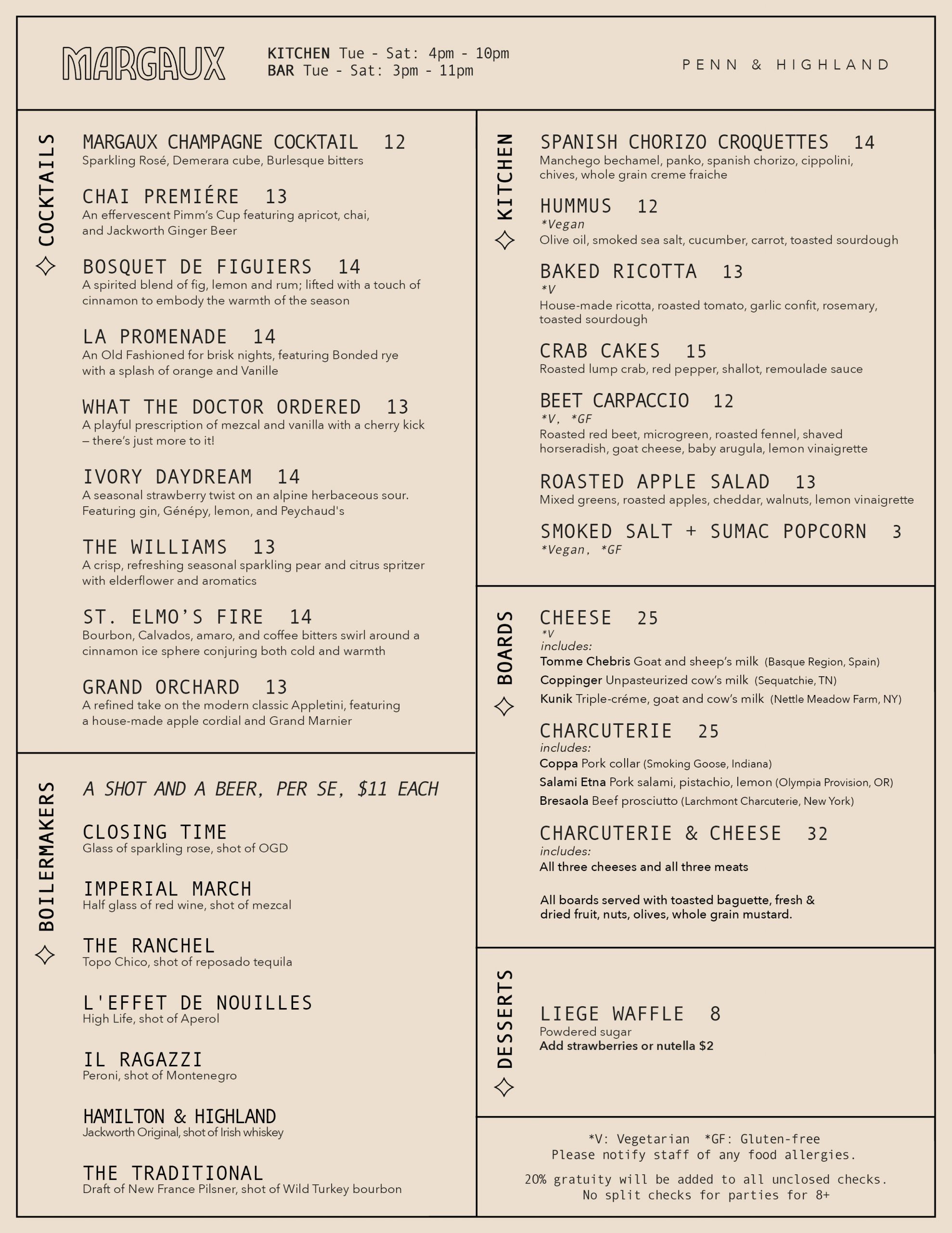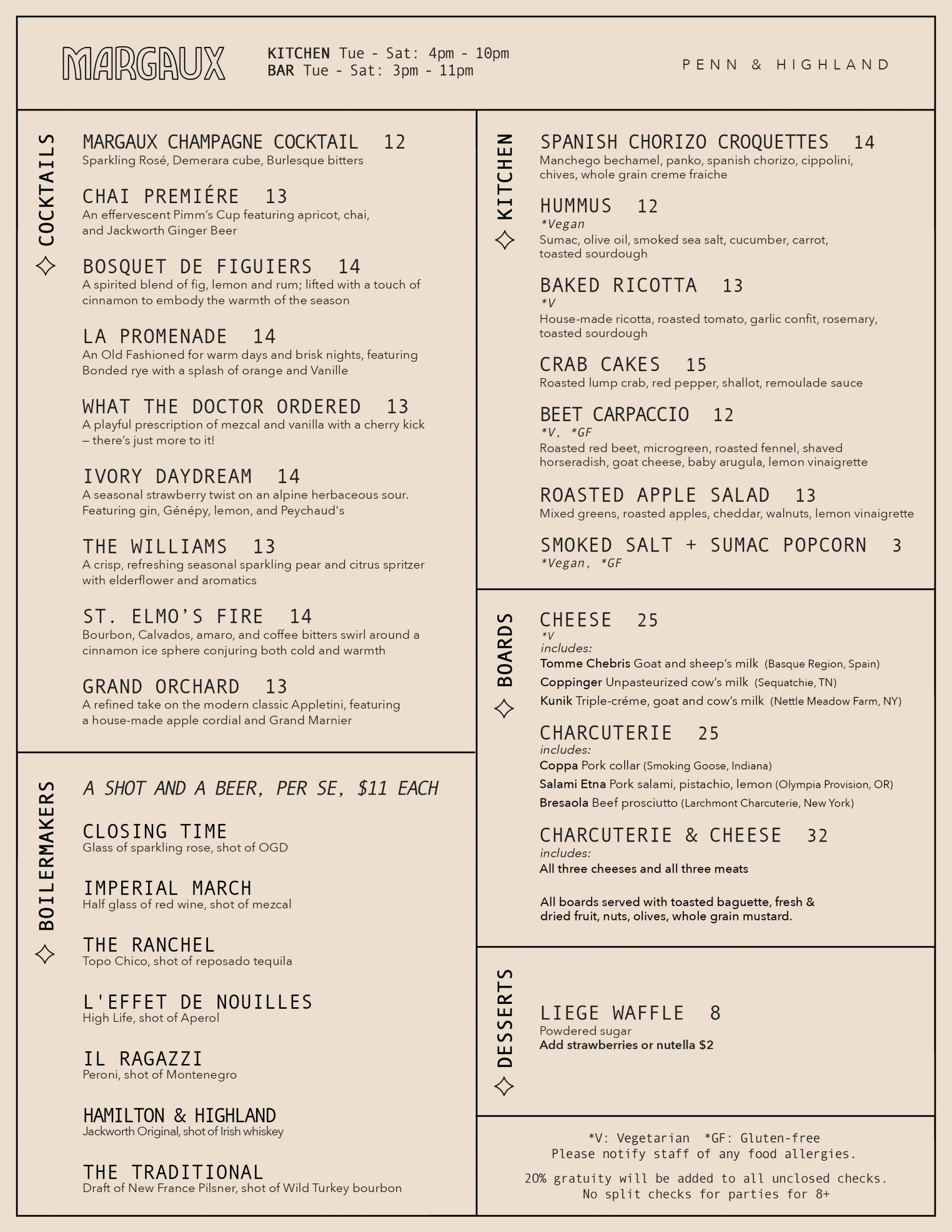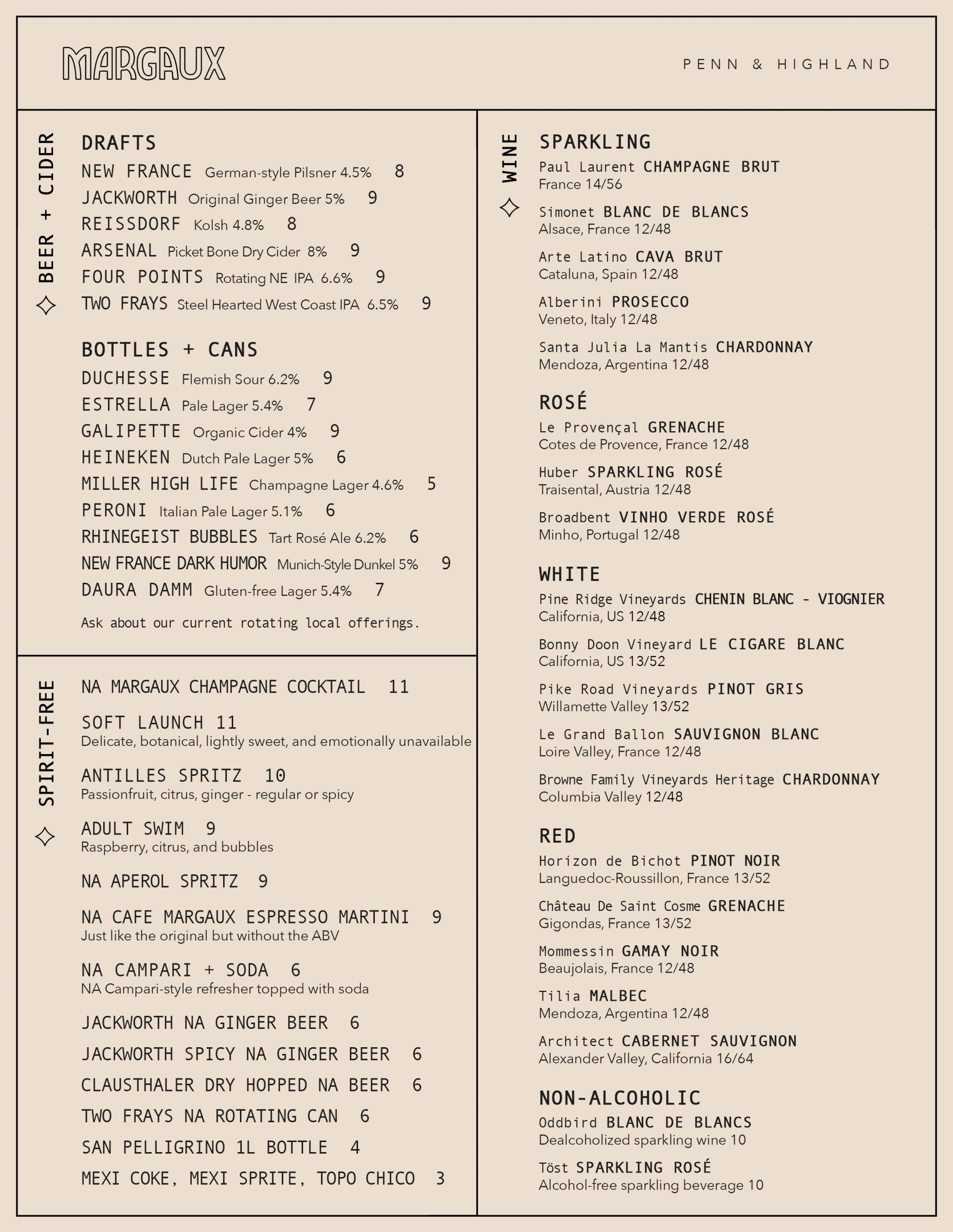 - Stay connected with us on social media @margauxpgh to get the latest happy hour drinks and updates.